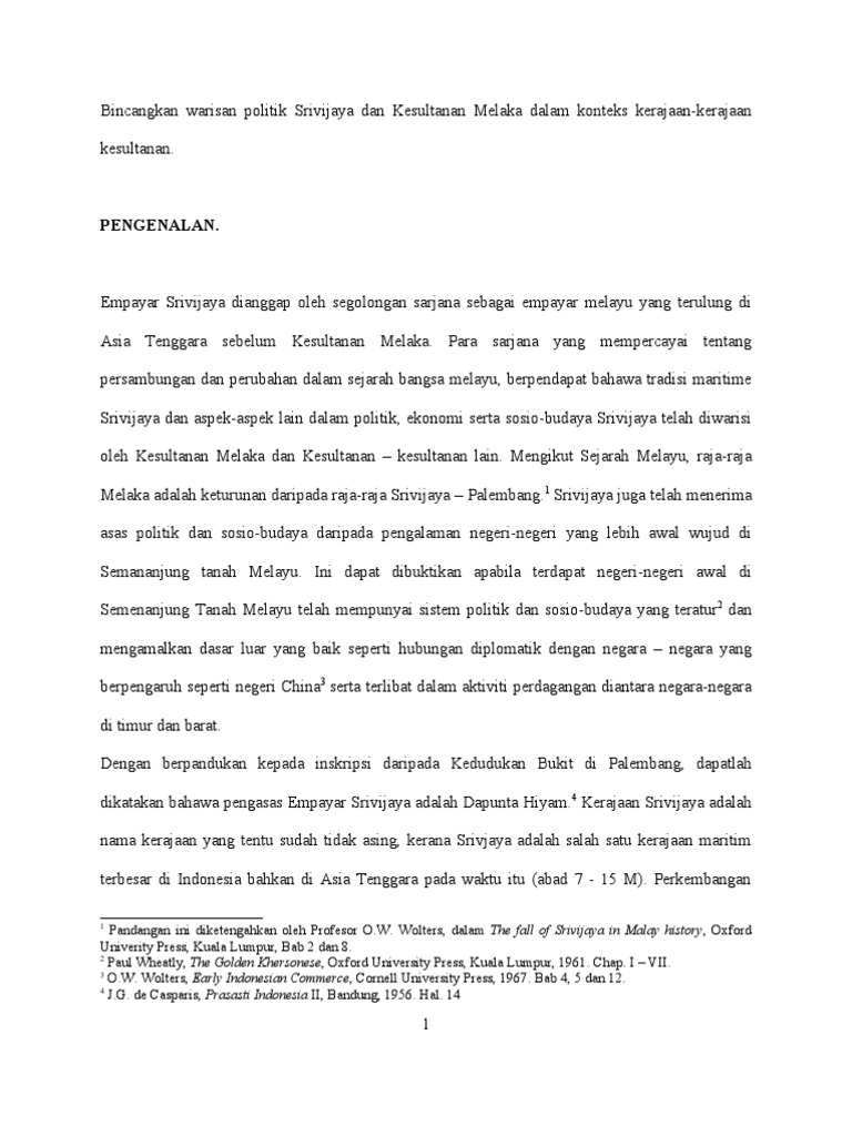Esultanan melayu melaka (كسلطانن ملايو ملاك).kerajaan ini diasaskan oleh seorang putera srivijaya yang berbangsa melayu.