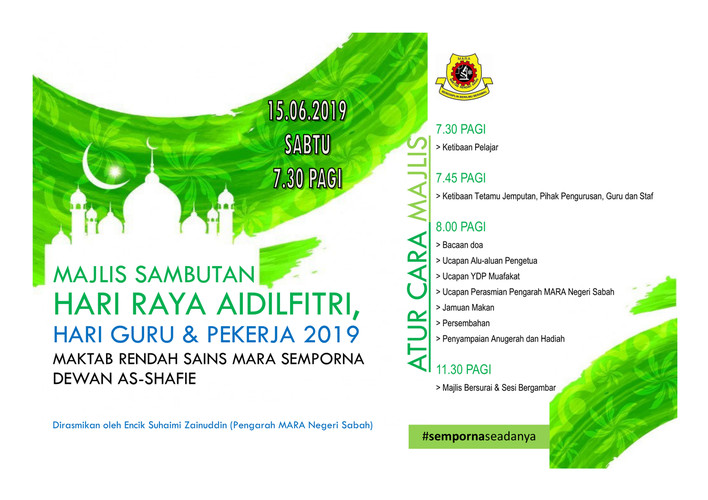 Selamat pagi dan salam 1 malaysia kepada warga smk kulai besar. Majlis dengan segala hormatnya mempersilakan. Persatuan siswa siswi felda (persada uitm 2013). Majlis iftar dan makan malam timbalan menteri pendidikan i bersama warga jpn johor. Kemaman untuk menyampaikan ucapan seterusnya merasmikan majlis pelantikan kepimpinan murid bagi tahun 2014.